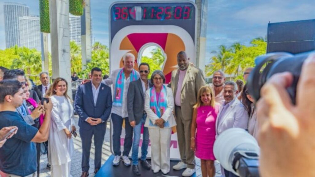Desde Miami lanzaron el video promocional con alianza de Marc Anthony y la cuenta regresiva hacia la el Mundial 2026, que comenzará exactamente dentro de un año en Estados Unidos, México y Canadá. “Hoy iniciamos la cuenta regresiva, pero más que eso, iniciamos el compromiso de toda la ciudad y el condado, porque este no es solo un hito deportivo, es un hito de Miami”, dijo la directora ejecutiva del comité anfitrión de Miami para el Mundial 2026, Alina Hudak. Además del lanzamiento de la cuenta regresiva hacia la máxima competición de selecciones de fútbol, el evento contó con la presencia del salsero de origen puertorriqueño, quien presentó un breve video que celebra la cultura y la pasión de Miami. Fue develado el reloj con la cuenta regresiva por las autoridades locales junto a Marc Anthony poco después del mediodía durante un acto en el exterior del Museo de Arte Pérez de Miami para celebrar esta fecha icónica.