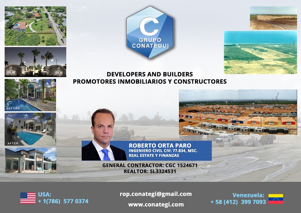 “Mi actividad aquí la he enfocado al área de Real Estate y General Contractor, realizando hasta el presente algunos ‘flips’ (‘double deals’), a través de Conategi LLC, Conategi St. Moritz LLC, Conategi Palm Gardens LLC, Conategi Santorini LLC y Pataruco LLC. Intentando crear una estructura para el manejo integral de los mismos, desde la consecución, remodelación y venta, garantizando así un resultado óptimo en cuanto a calidad y costos para todas las partes involucradas, transformando un ‘flip normal’ en un verdadero ‘double deal’ para ambas partes”.