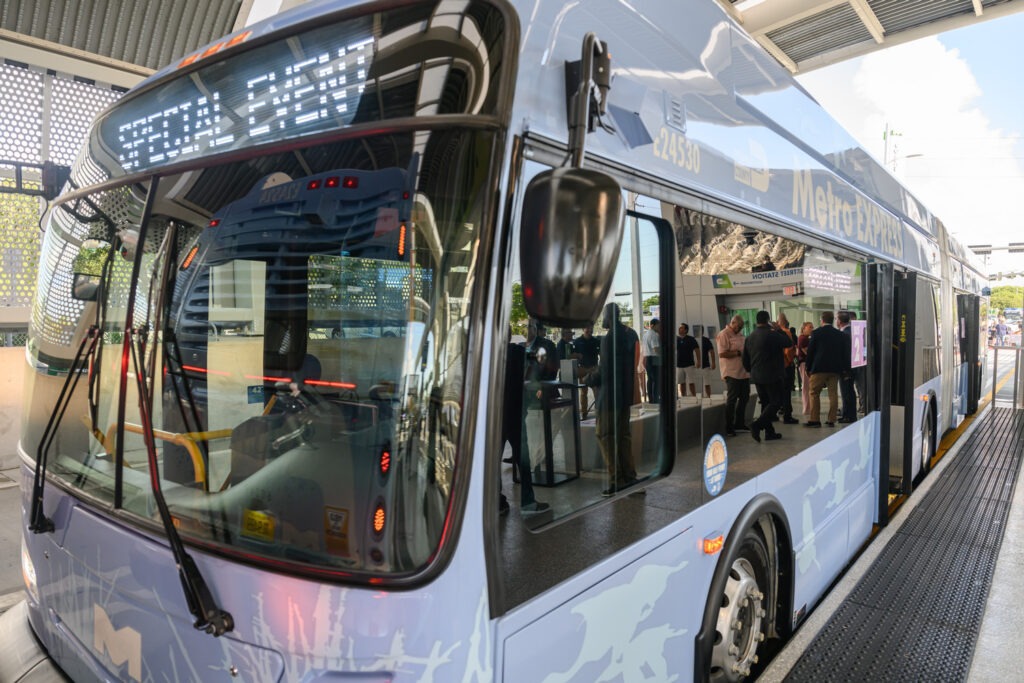 El vanguardista sistema Metro Express es la línea BRT eléctrica de batería más larga del país, con una extensión de 32 kilómetros a lo largo de la South Dade TransitWay. Cuenta con barreras de seguridad tipo riel, prioridad en los semáforos y carriles exclusivos para viajes más rápidos y seguros. Catorce nuevas estaciones distintivas a lo largo del corredor ofrecen cobro de tarifas fuera del autobús, acceso a nivel, áreas de espera con aire acondicionado, wifi, asientos a la sombra, estacionamiento para bicicletas y estaciones de carga, lo que ofrece a los pasajeros una experiencia premium en cada parada.